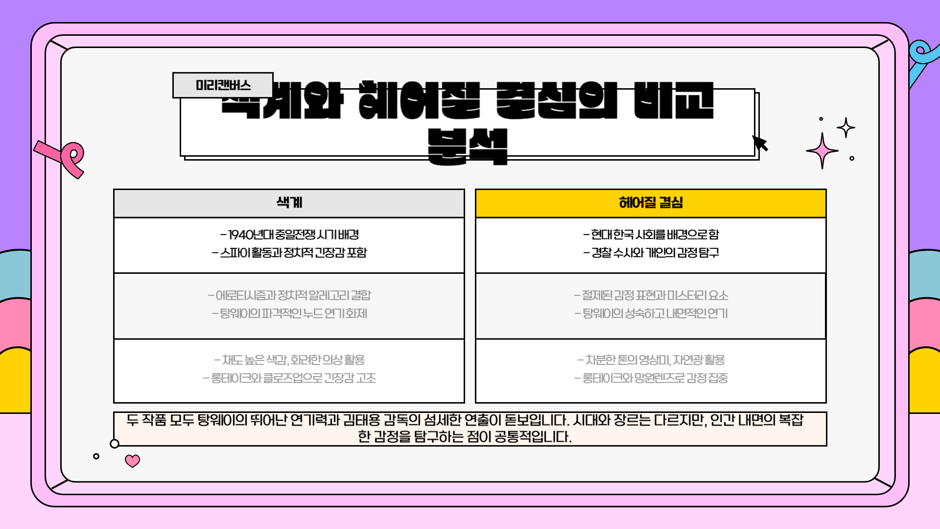- <헤어질 결심> (2022) – 박찬욱 감독 작품. 칸 영화제 감독상 수상. 국내외 여우주연상 8관왕.